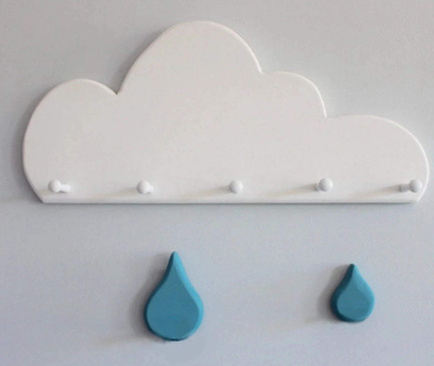 Cloud Coat Hooks are a great way to decorate a child's room or nursery. Add a couple of raindrops to complete the look!